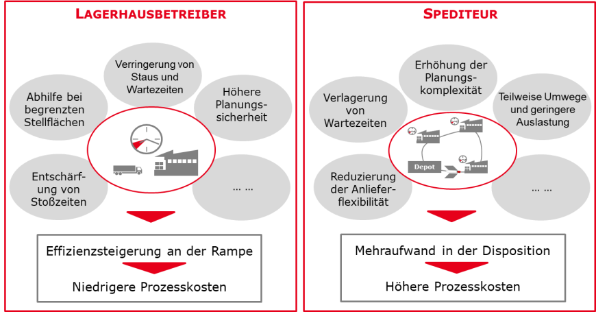 Zeitfenstermanagementsysteme aus der Perspektive von Lagerhausbetreibern und Spediteuren.